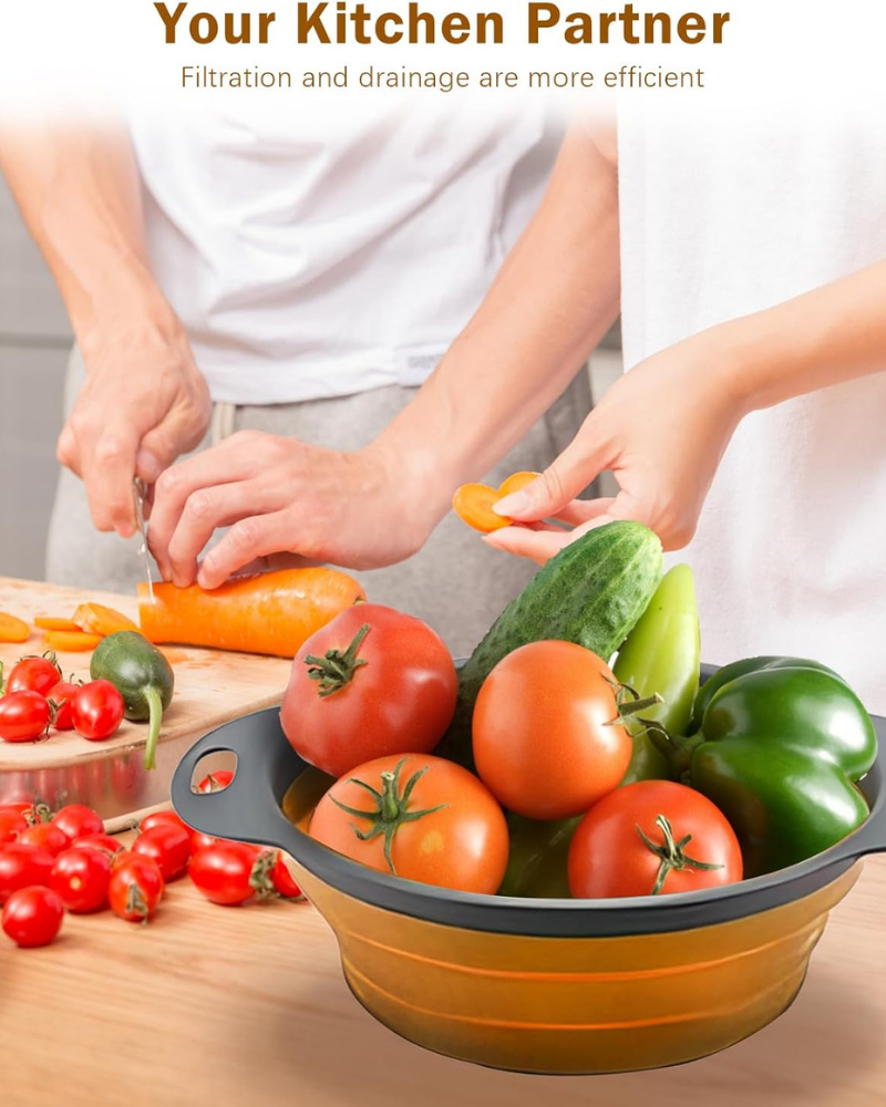 Collapsible Colander, Collapsible Strainer, Space-Saving Kitchen Strainer, Food-Grade Silicone Folding Strainer Colander with Handle (Orange)